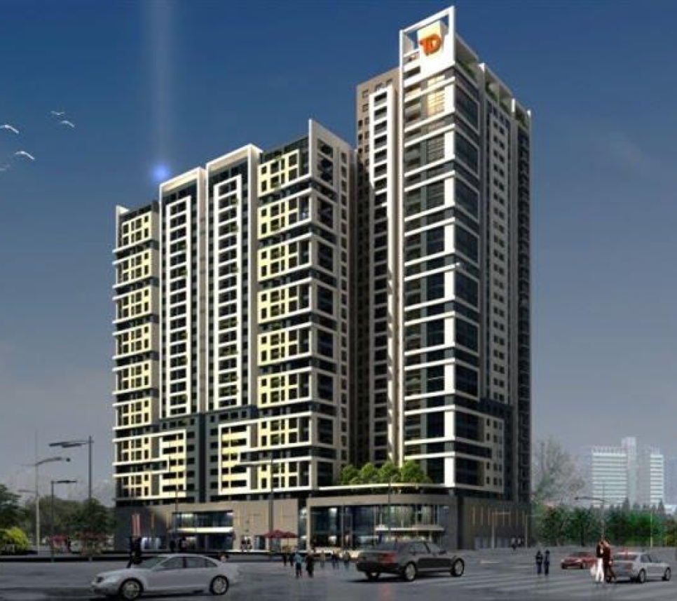 hối nhà cao 28 và 33 tầng; 02 hầm để xe; quy mô 600 căn hộ với diện tích từ 85,9m2 – 127,8m2